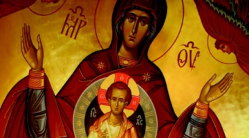 But I had had an “encounter” with an icon called “Our Lady of the Sign.” This icon depicted Mary pregnant with Christ and we could “see” into her womb. There was Christ as a child and He was surrounded by stars inside Mary’s womb! Yeah, stars! He Who could not be contained had made Himself small enough to fit inside the womb of a woman. He has exercised His mighty power to enter into His creation and take His flesh from one of us, a pious and dedicated woman named Mary, a “vessel” that had been preparing her whole life to fulfill this ministry for the salvation of the world.